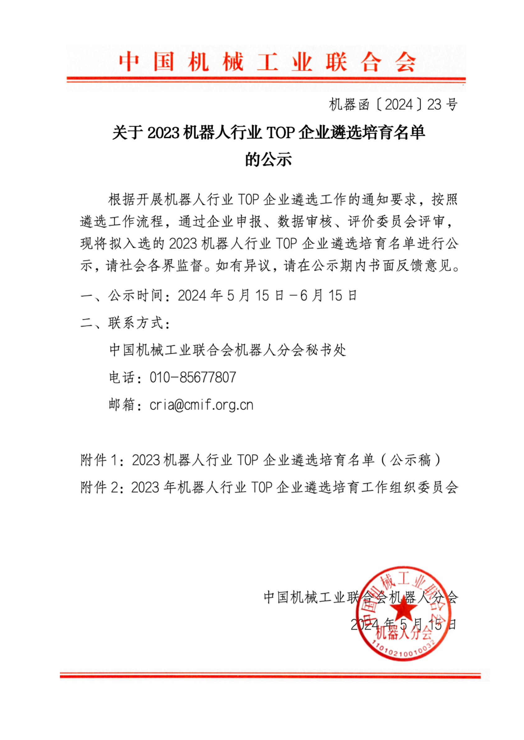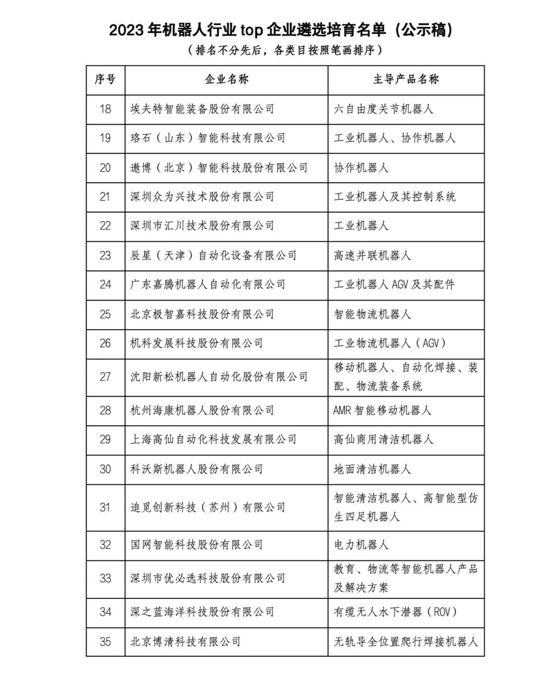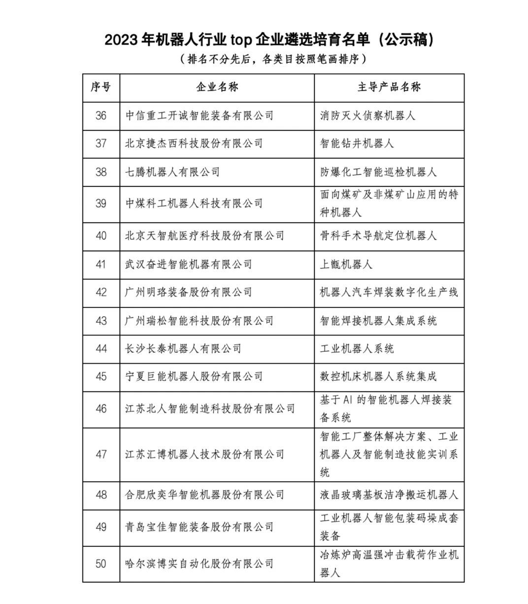 关于2023机器人行业TOP企业遴选培育名单的公示