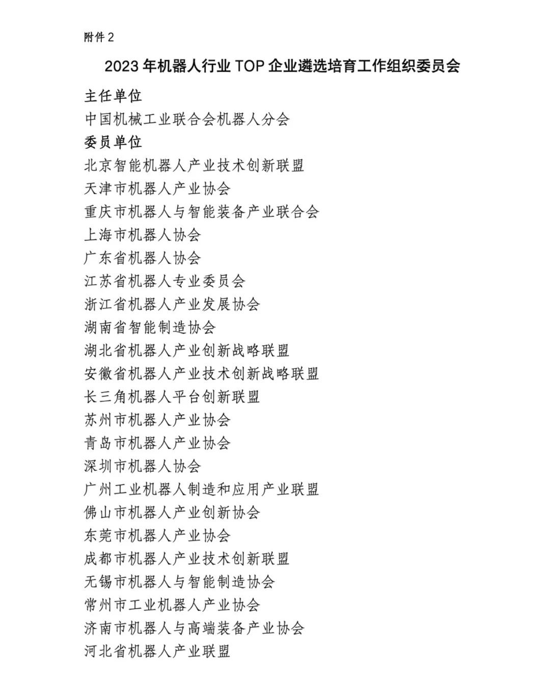 附件2:2023年机器人行业TOP企业遴选培育工作组织委员会
