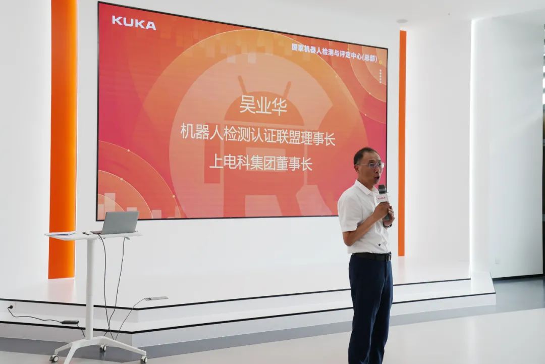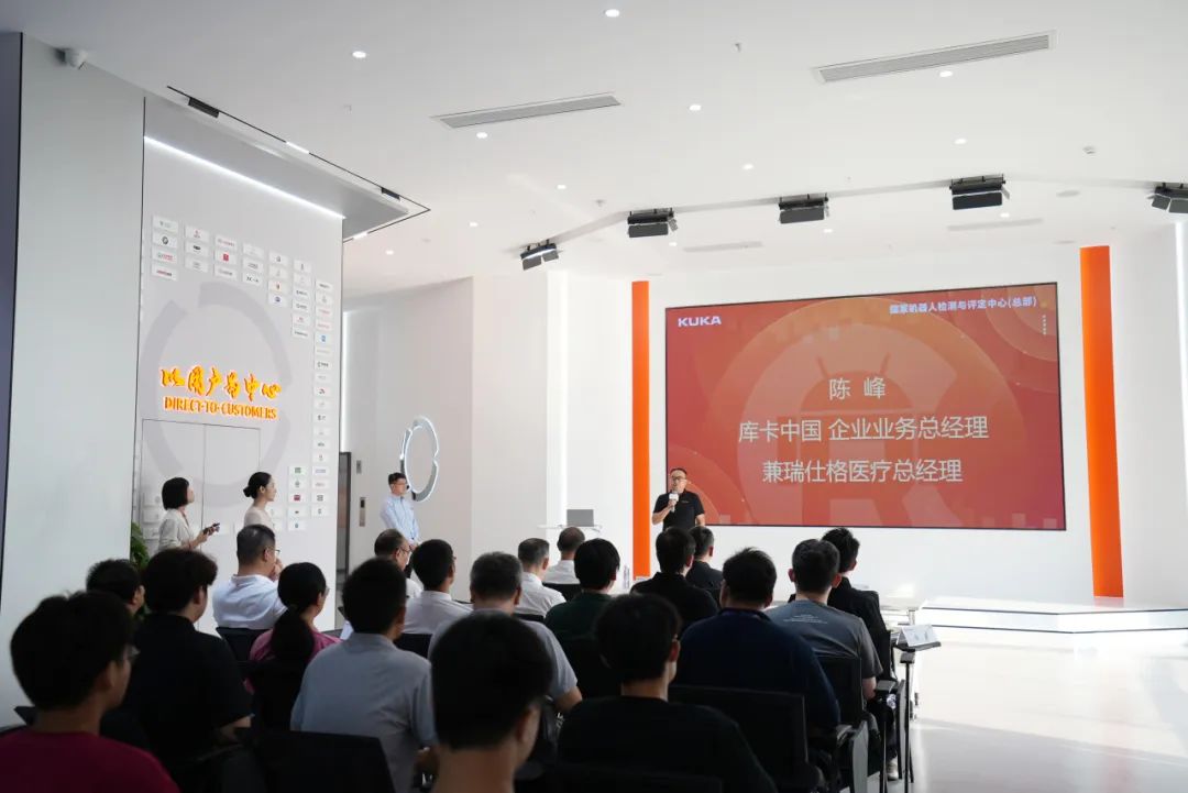 中国机器人检测认证联盟理事长、上海电器科学研究所(集团)有限公司董事长吴业华,库卡中国总经理许桂友,库卡中国企业业务总经理兼瑞仕格医疗总经理陈峰,质量总监沈毅,研发总监张冶,国家机器人检测与评定中心(总部)主任、星空官网(中国)机器人有限公司官网院长郑军奇,常务副院长柴熠,机器人检测服务产品线经理朱晓鹏等出席了本次颁证仪式。