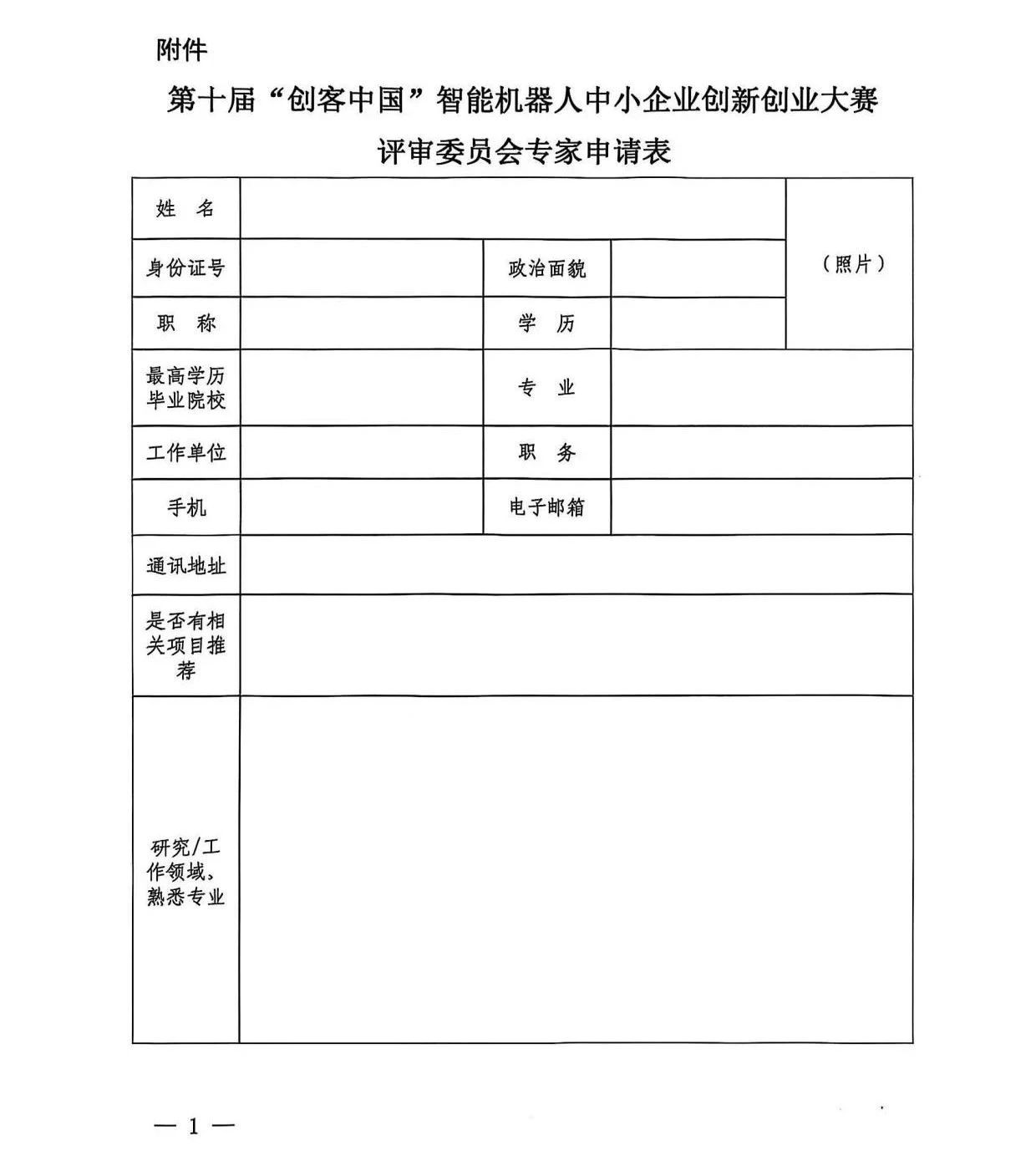 附件:第十届“创客中国”智能机器人中小企业创新创业大赛评审委员会专家申请表.docx