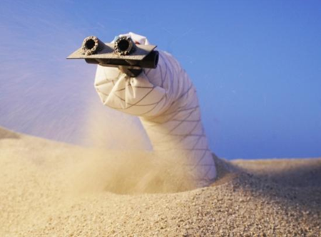现在他们正往地下走。当然,这里最大的障碍是,即使在沙子和土壤这样的颗粒状材料中,阻力也比在水或空气中大得多。但是加州大学圣塔芭芭拉分校和佐治亚理工学院的团队开发了一种机器人,可以通过多种方式解决这个问题。