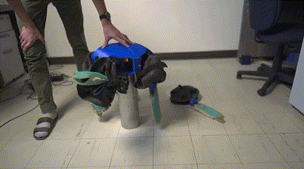可变形的四肢是最重要的部分,由可变刚度材料和气动驱动器组成,这种可变刚度材料可以通过加热软化,并给气动推杆充气,使肢体的横截面积和硬度发生变化。