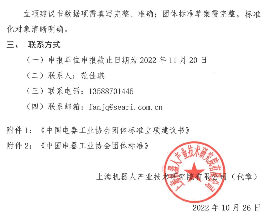中国电器工业协会团体标准立项建议