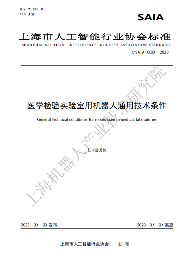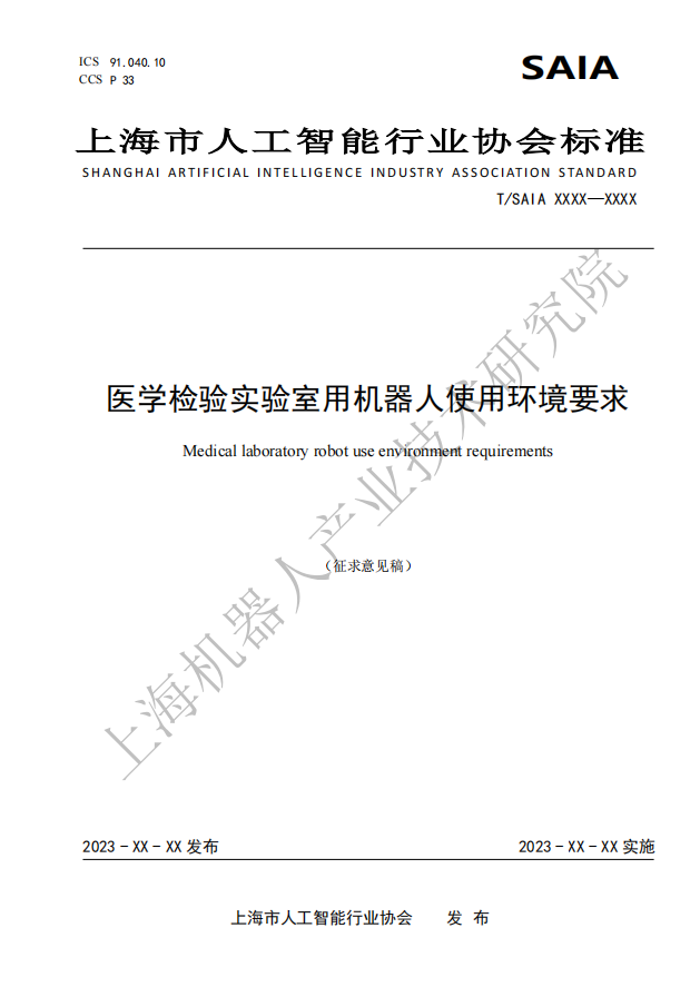 由上海市人工智能行业协会归口,星空官网(中国)机器人有限公司官网有限公司作为主要起草单位研制的四份标准:《医学检验实验室用机器人通用技术条件》、《医学检验实验室用机器人系统安全要求》、《医学检验实验室用机器人交互要求》、《医学检验实验室用机器人使用环境要求》现公开征求意见。