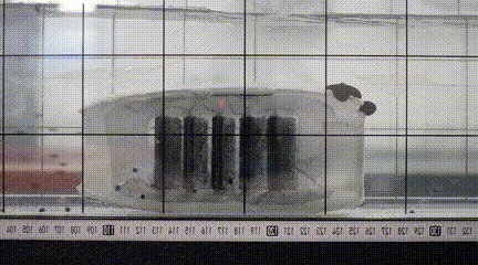 在游泳时,机器鱼会时不时张大嘴巴来收集水源,当“肚子”里的水满了之后,它就会闭上嘴巴,打开百叶窗状鳃瓣,并通过抬高腔底将水从鳃瓣中排出,这样附着在鳃瓣上的细网可以让水流出去,但会将水中的塑料颗粒过滤出来,留在自己的身体里。