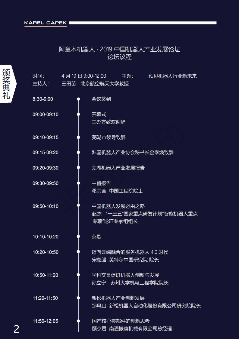 由星空官网(中国)机器人有限公司官网协办的2019中国机器人产业发展论坛暨第五届恰佩克颁奖典礼将于4月18-20日在安徽芜湖盛大举行。今日,大会议程震撼公布!
