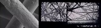 对比:两种口罩在全新、使用过、使用后烘烤的灭菌效果、纤维结构变化情况。