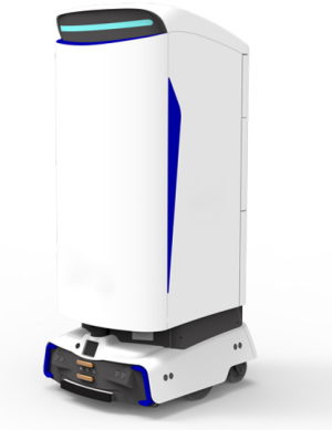 药品/补液运输机器人外观尺寸为810x480x1245mm(长*宽*高),单个药柜容量为55L,整体载重150Kg,最高运行速度为1.8m/s。 主要用于中心药房到各病区的口服药物及Pivas运输、病区到检验科的标本运输。